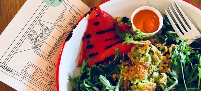 With the Mangal oven at centre stage, BabaBoom specialise in kebabs. Although kebab and veggie don’t sound promising combination, it’s falafel (and grilled cauliflower) to the rescue. After a long debate between the waiter and I about whether the Falafel kebab (£9.50) or Baba’s Balanced Lunchbox (£7.50) (which also features falafel) was a better option, I opted for the latter. I do have a soft spot for bowl food; I love creating my own Buddha Bowls, throwing together different flavours and textures, herbs and spices, colours and cultures. Made well, they feel refreshingly healthy and full of colour and crunch.