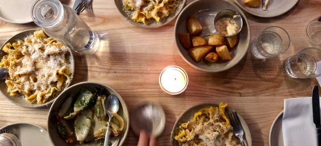 Beyond their coffee, though, Crispin is a day-to-night eatery, with a weekly-changing dinner menu inspired by local and seasonal produce – think Clapton Park honey and Dalston’s Dusty Knuckle bread. The simple and short menu rotates weekly and their Instagram feed featuring their delicious looking pastas (think cavolo nero tagliatelle topped with a very generous grating of pecorino) reeled me in. Very ingredient-led, looking at their menu you may just want to try it all and you can do just that: one of everything is a written option — all yours for £45.