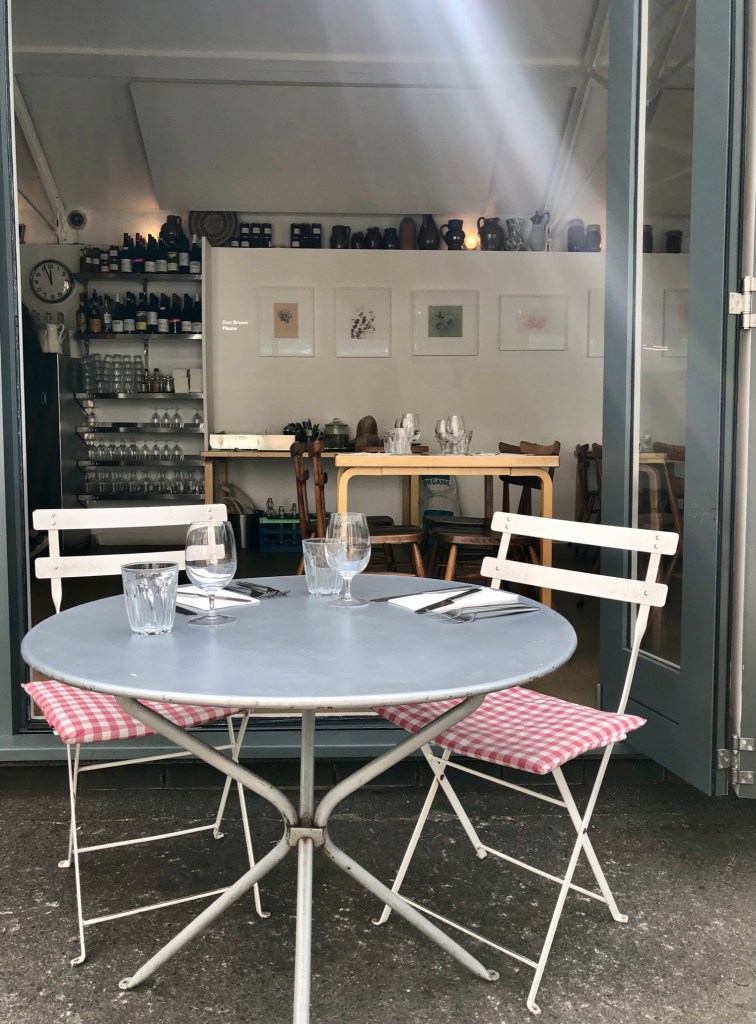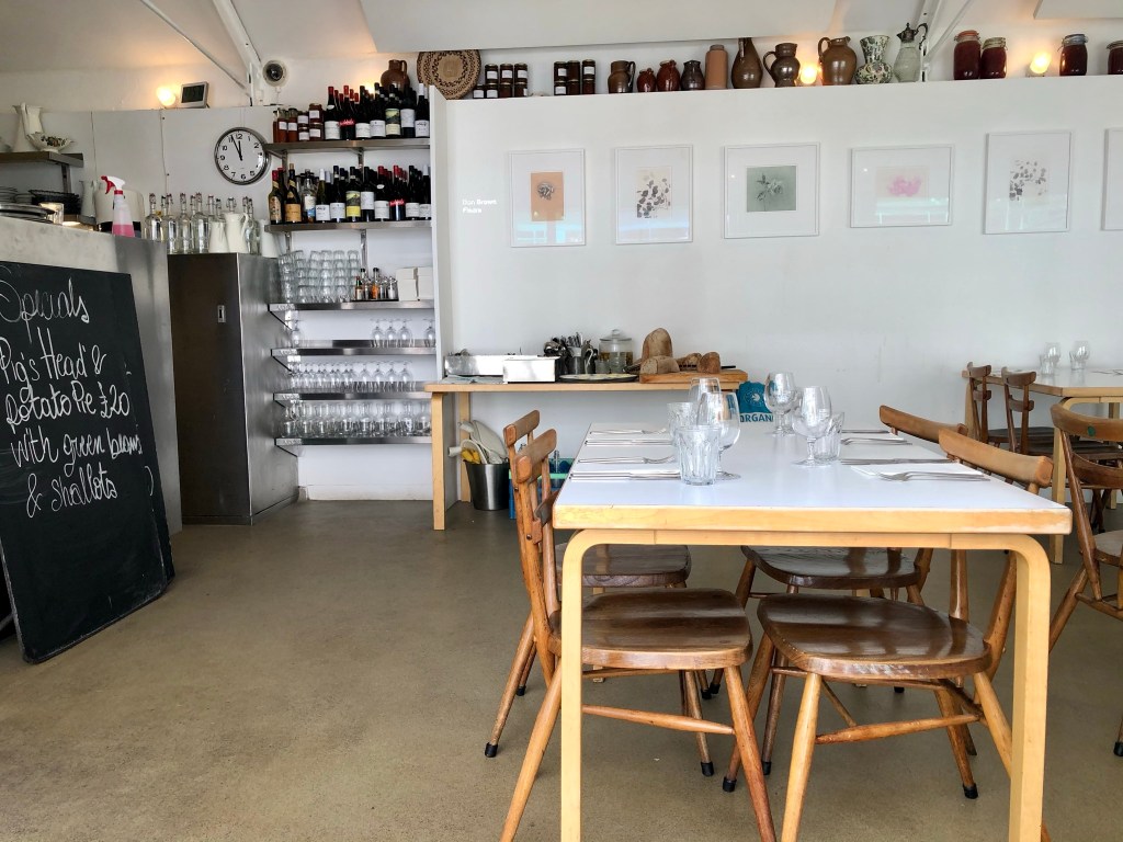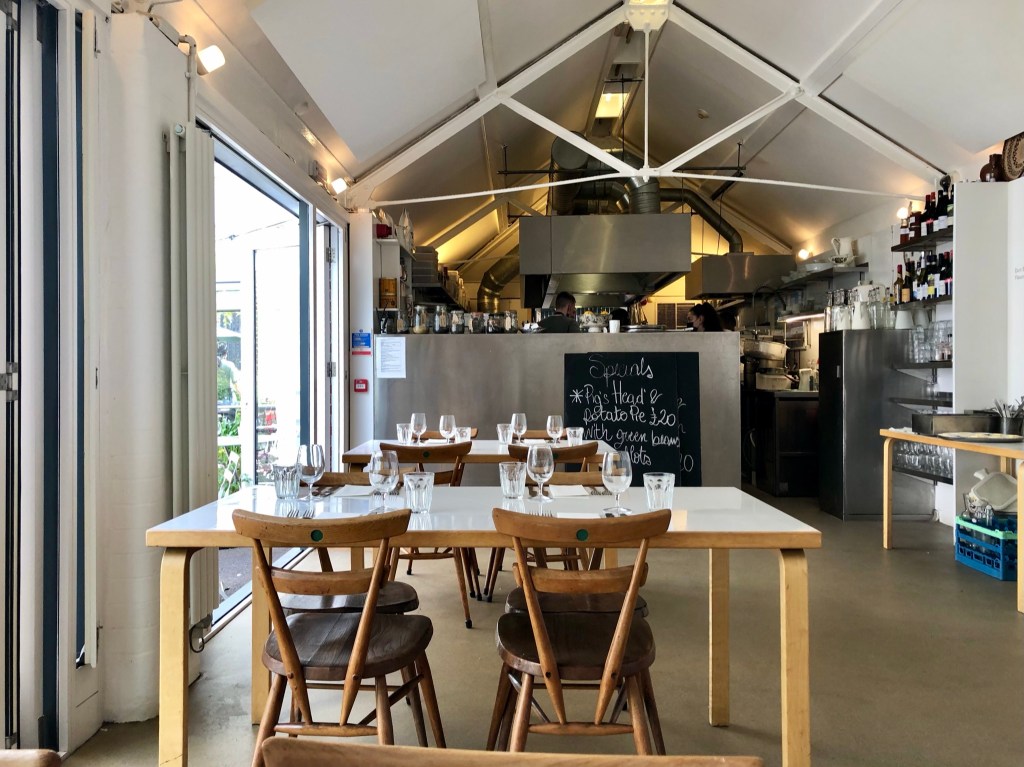There’s a reassuring straightforwardness to Rochelle Canteen. The daily changing menu is black and white. Printed on A4 paper in Times New Roman, with daily specials on the blackboard. Plain and simple classics. Although there were no vegan options on today’s menu, the kitchen were happy to play around with seasonal ingredients on hand and create something bespoke.