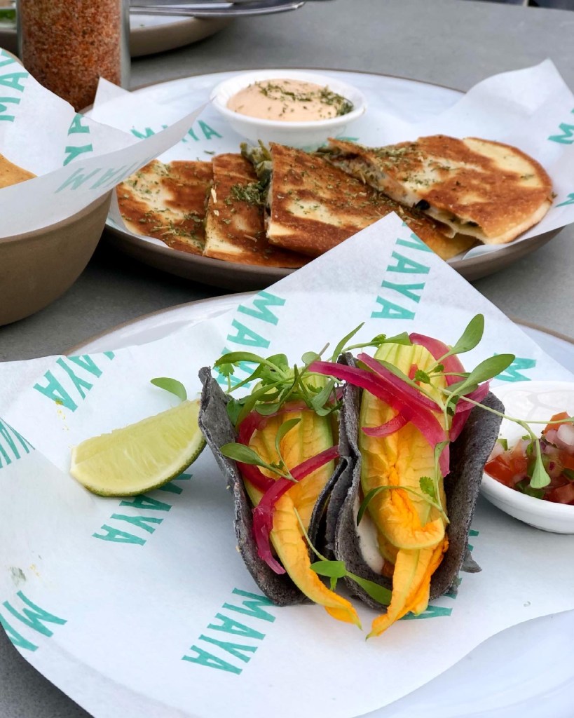 Foodwise, the menu was designed by chef Giacomo Pettinari, picking up experience from LA Mexican restaurants and from his mainly Oaxacan kitchen staff. Focusing on coastal “Baja Mexican” food, made with local produce, the menu features all the elements you’d expect from a Mexican restaurant: bites, tacos, tostadas, sides and plenty of tequilas / mezcals. The “plant-based” options on offer here are extensive making Maya a big draw (for me at least) compared to most other taquerias in London.