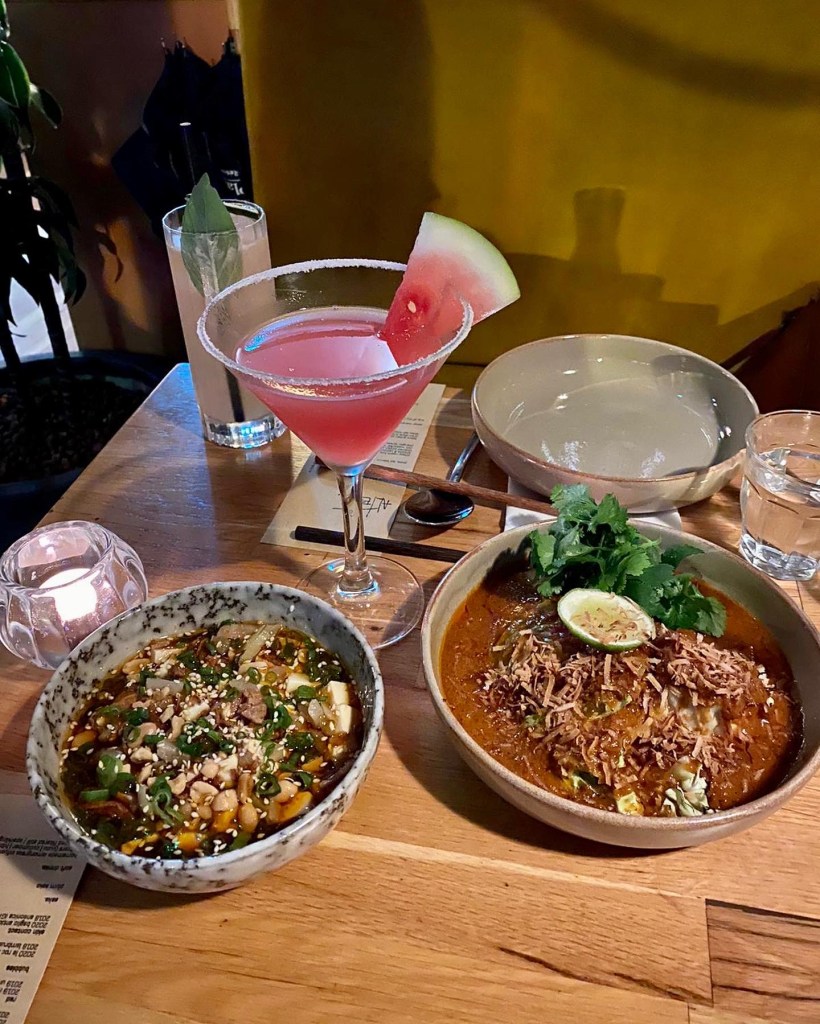 The menu – designed for sharing – is incredibly creative with influences across Asia – China, Thailand, Malaysian and Vietnam – celebrating the regional specialities of each country, with a bit of Italy thrown in for good measure. Think Vietnamese ‘Falling Water’ Salad of Pomelo & Shiso; Pizza, Ajo Blanco & Basil. Each dish is also designed through the prism of street food, evoking that feeling of travel which we’re all so craving post-lockdown. It’s incredibly exciting.