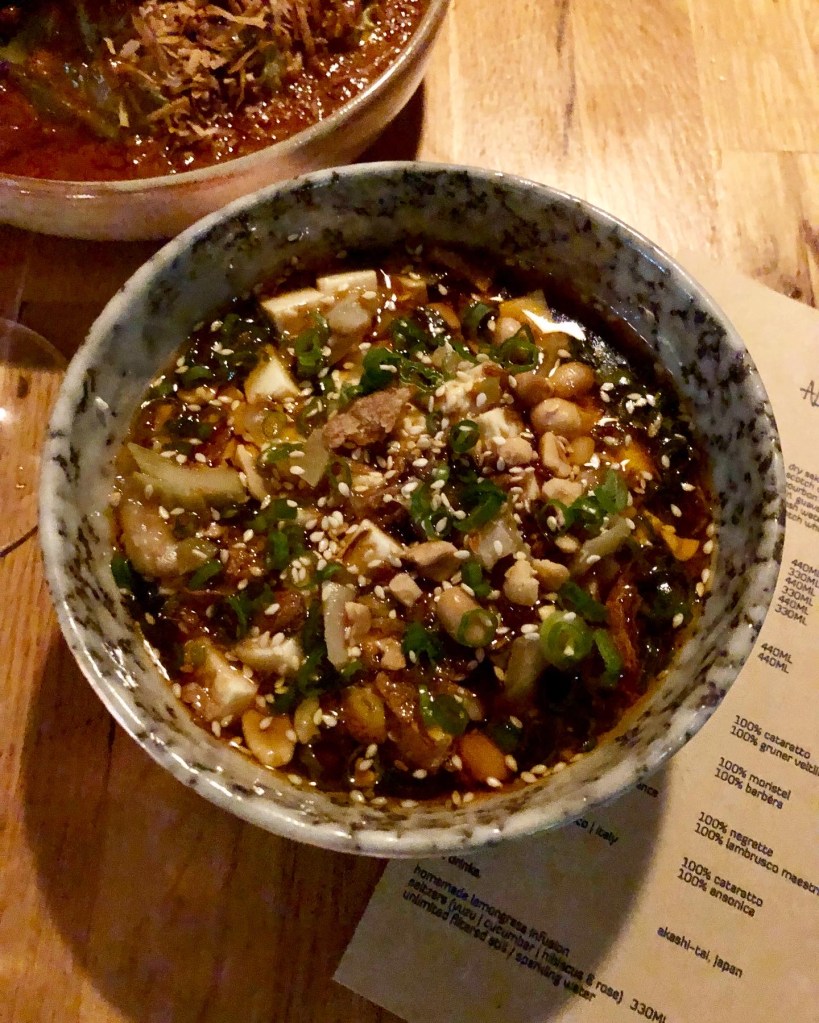 Alongside the cabbage came the Chengdu street tofu in bamboo sauce (£10). A Chengdu mid-morning dish, the smooth, silky tofu was offset by some serious flavour punches thanks to oodles of garlic and chilli soy infusing the sauce. Given Asian food is all about the finishing touches, the sauce was complemeneted by a topping of fresh spring onions and crunchy peanuts. I kept returning for one spoon more.