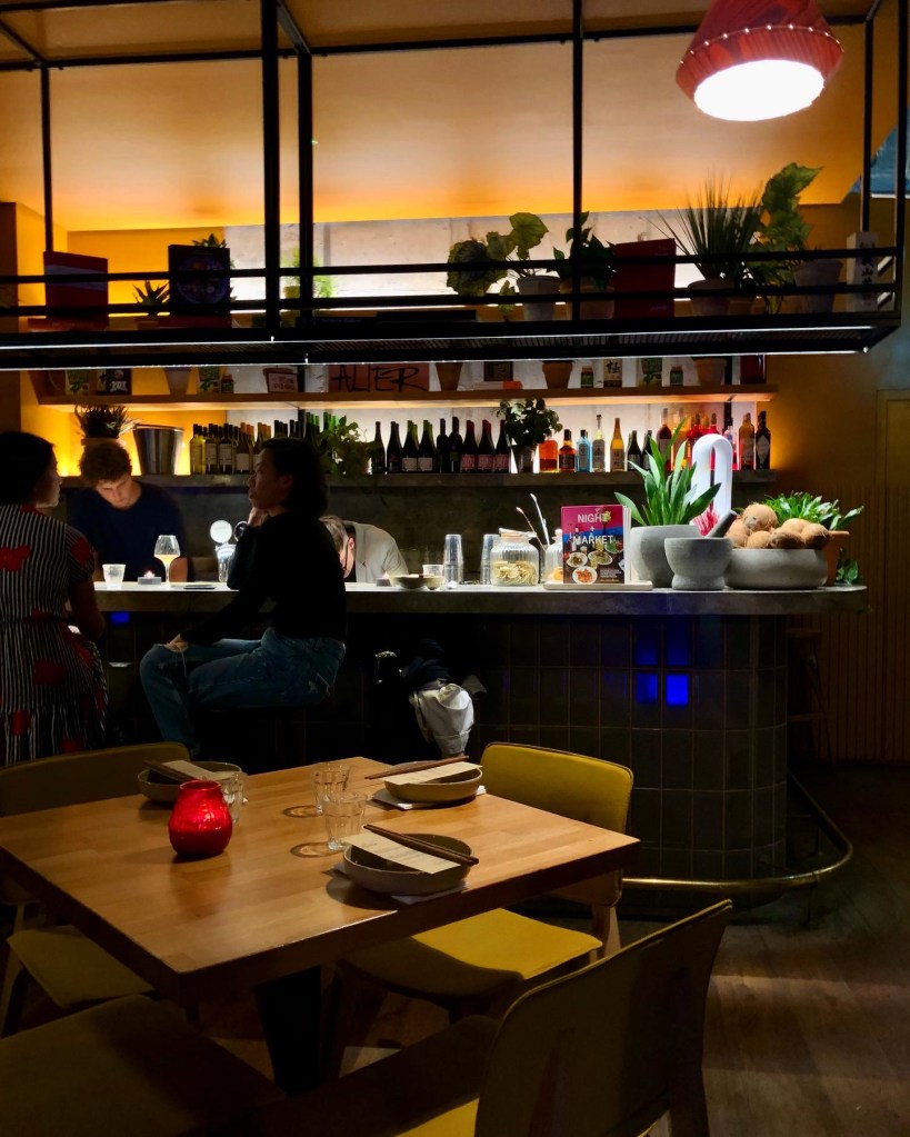 Set on the first floor of Lehman Locke, Alter has a kind of Manhattan vibe. The minimalist décor and moody lighting allow the food and drinks to do the talking. It all feels very smart, but with an easy kind of East London feel and a very attractive bar. You would never guess this was a vegan restaurant.