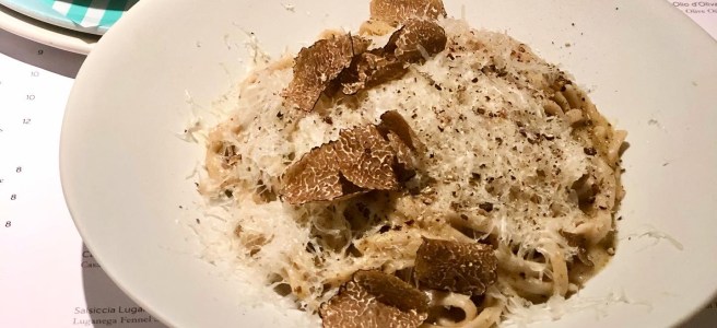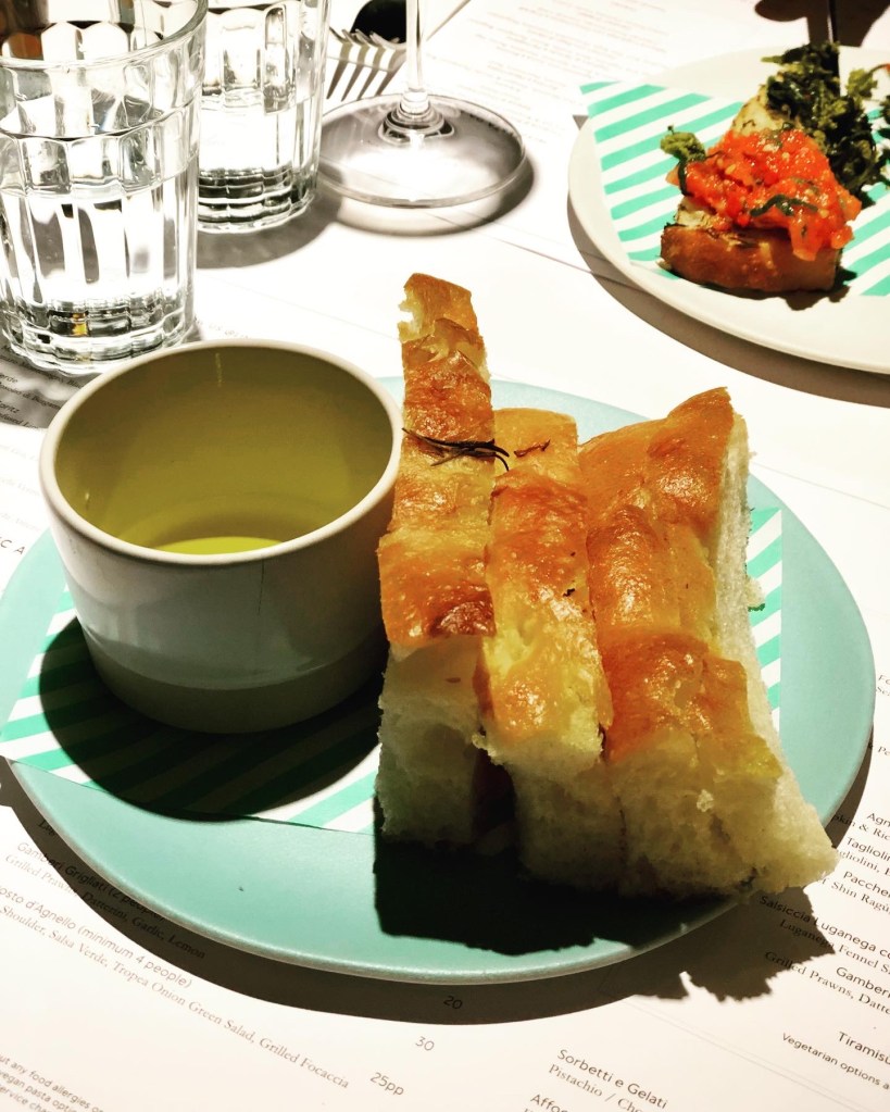 To start, my companion and I shared a Trio of Bruschette (£8) – two with tomatoes, basil and olive oil, and the other with friarielli and chilli. Whilst the first were summery sweet (even though it’s November!), the latter was garlicky deliciousness at its best, with all the greens to provide a sense of virtue to counteract the evening’s carb indulgence. With standards set high, the Focaccia (£4) followed suit well, thanks to spot-on seasoning of rosemary and seal salt, and the best EVOO around for dipping – peppery sweet, in true Italian quality.