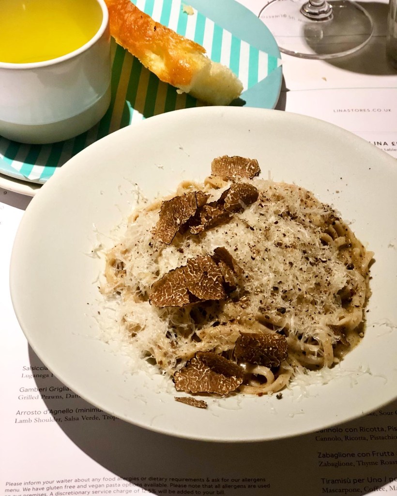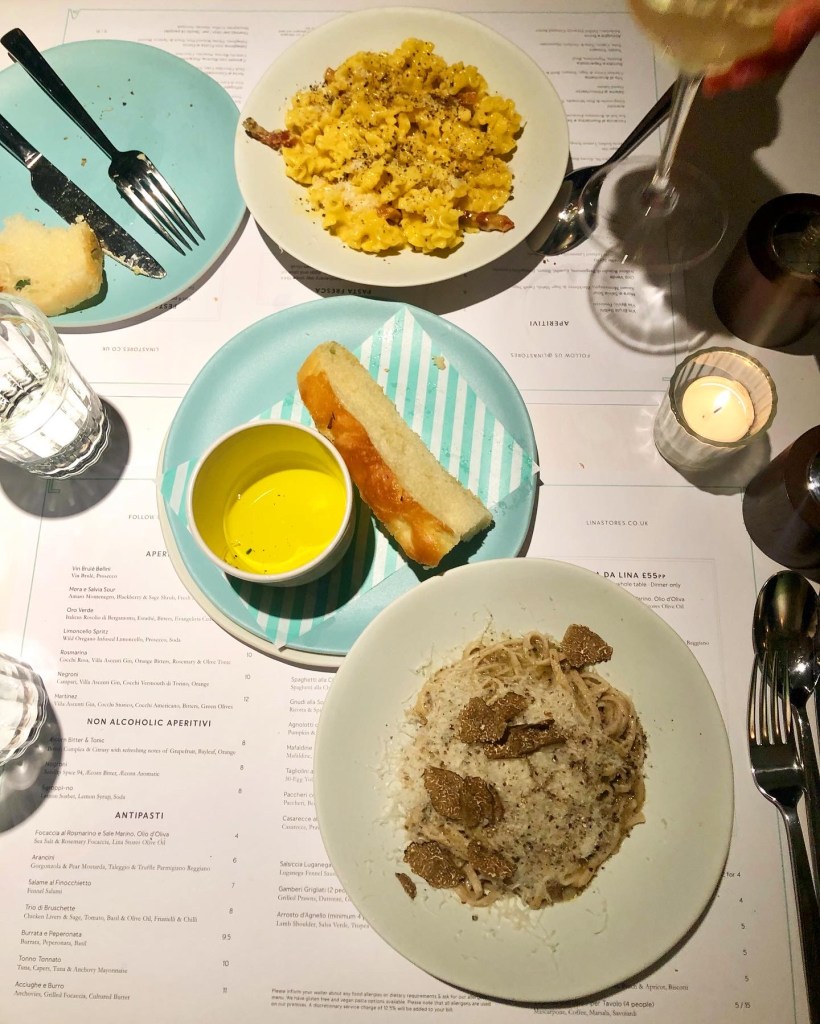 Lina Stores have recently nabbed a spot convenient to any City worker in the ever-so-cool Bloomberg Arcade. Filling the site of what was previously Andrew Wong’s excellent Kym’s, a pandemic casualty, Lina had big shoes to fill. Though given their legendary name, their choice as second act was always a solid one. In case you hadn’t heard of Lina Stores, their original outpost – the legendary Soho deli on Brewer Street – opened in 1944, where the art of fresh pasta was perfected. Over the past five years, they’ve branched into the restaurant territory, opening a pasta restaurant around the corner on Greek Street in 2018, another in King’s Cross in 2019 and most recently, an overseas outpost in Tokyo! All have been remarkably delicious successes.