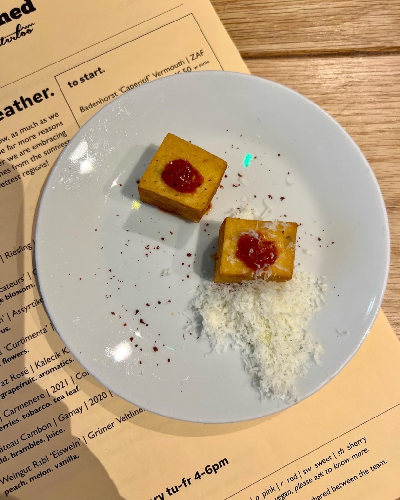 The menu is also incredibly vegan friendly. To share, we went for the Chickpea panisse, chilli and parmesan (£2.00 / each). Crispy little bites, these brought the perfect balance of sweetness and spice. A very sumptuous mouthful. Ideal alongside wine.