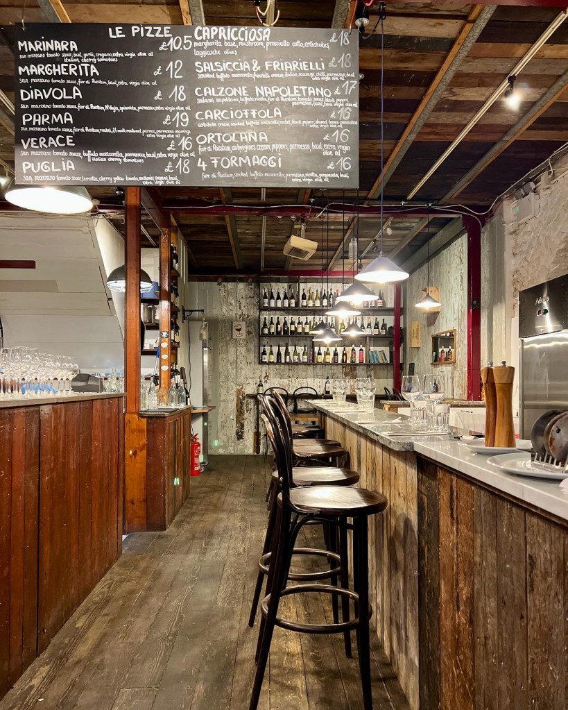 As the name suggests, Bon Vino is a spot to go to for wine. Italian wine to be specific. Set up by an Italian by the name of Alessandro, as the website reveals “wine and the making of it is in his blood”. Born and raised in Frosinone, around 60km outside of Rome, his first memory of receiving a taste of wine was from his grandfather – another passionate winemaker. After spending time in France, Alessandro opened his first shop in Dockhead in 2011. Cultivating knowledge and expertise for a few years, he then opened a site on lovely Maltby Street in 2019, now managed by French wine sommelier, Rapahel. Though originally serving only vino and aperitivo, the restaurant recognised the popularity of pizza and securing a Neapolitan pizza maestro, they now serve sourdough pizzas. A winning formula.