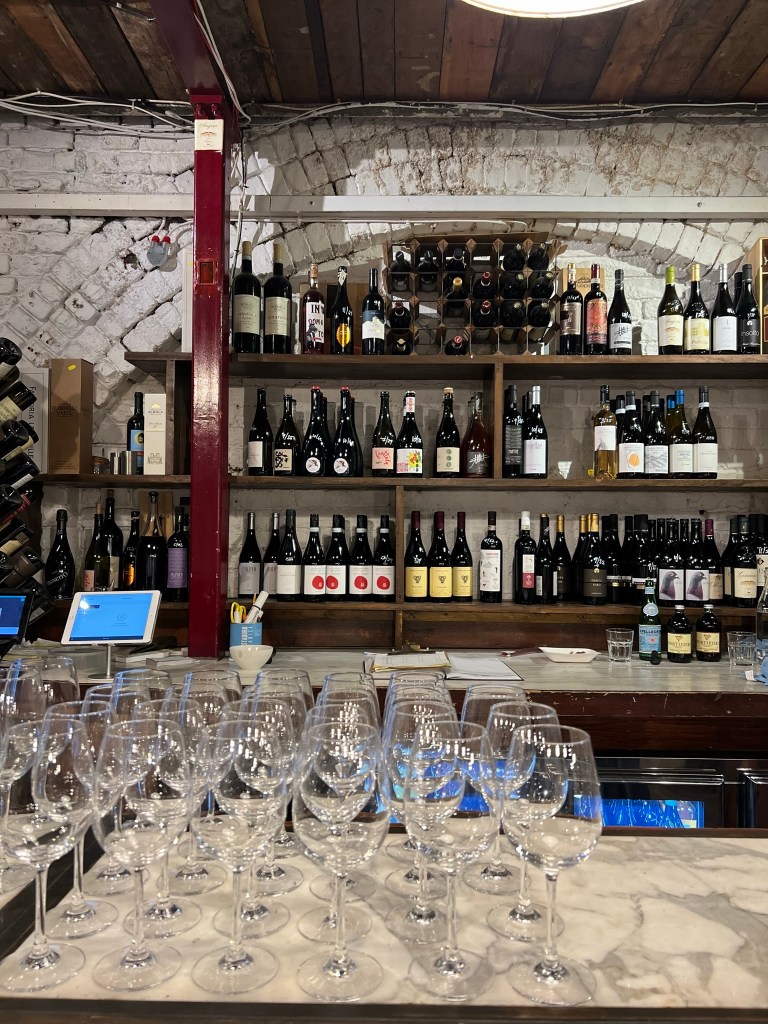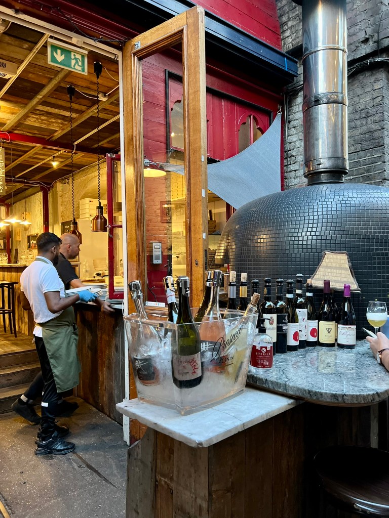 Maltby Street by night is not to be overlooked. Tucked away from tourist-crowded Borough Market and the newly developed Borough Yards, Maltby Street has always been a favourite by day. And by night, the atmosphere feels relaxed and vibey. Though further up the street is the popular wine spot 40 Maltby Street, Bon Vino is housed in two locations further down, one being the former Lasco warehouse. With al fresco seating available in the summer, the setting is a lovely one. Wine bottles double as vases, wooden tables are antique and the staff are most welcoming, keen to recommend wines to match each pizza.