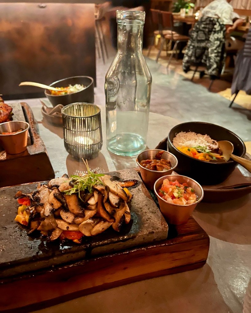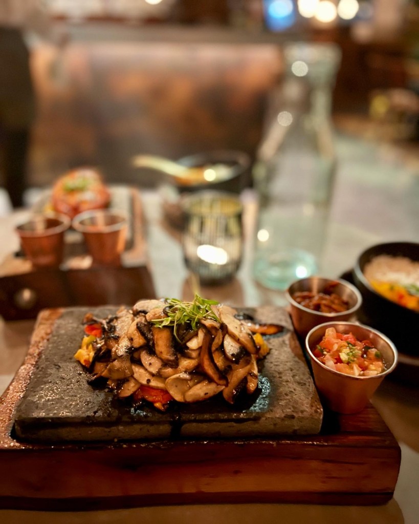I went for the Portobello Mushrooms “Rocks” (£24). Served over hot lava stones and sizzling from kitchen to table, the dish was recommended as their signature go-to. The idea of a hot plate was also impossible to resist mid-November.