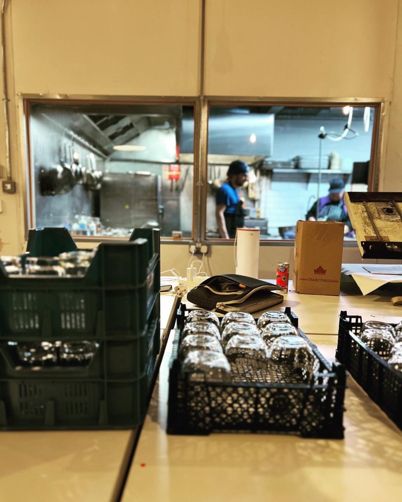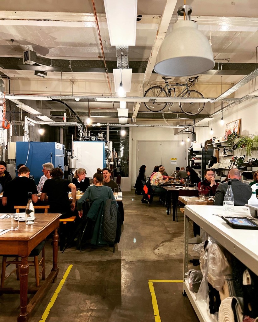 As mentioned, Slow Burn is a pop-up and an unusual location they have chosen to pop up in – a working denim factory! The entrance to the restaurant is somewhat deceiving, nestled between a petrol station and some residential houses. Inside, tables are dotted amongst various sewing paraphernalia, providing an immersive and totally unique dining experience.