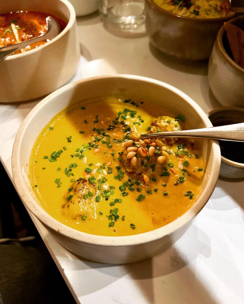 To go with, the Tandoori Sourdough Roti (£4.50) is a must. Like an Indian rotlo, its flamed finish makes it an ideal vehicle for scooping all the saucy dishes here. Particularly the trio of mini (vegan) daals the chef sent over for us to try: Tadka Dal (£8), Salan (used as the base for the biryai here), and a vivid spinach Saag (used as the base for the paneer dish). The nutty finish of the Salan was probably the highlight, a bowl finely tempered with curry leaves and maximum flavour.