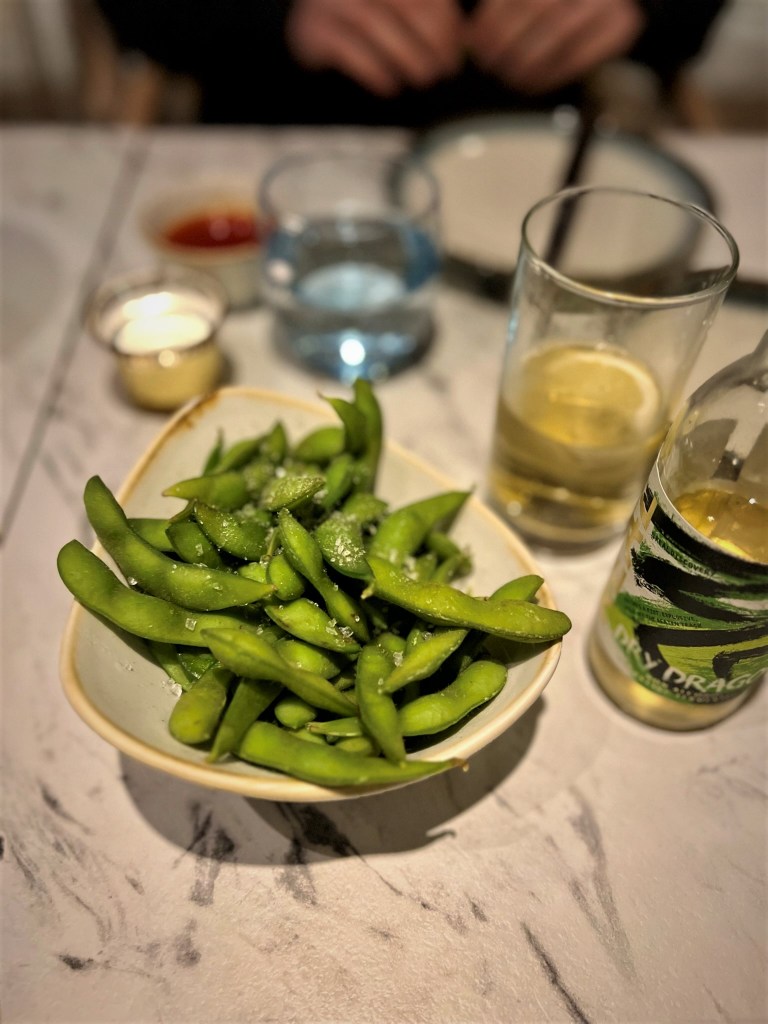 Like its sister venue, Huo serves up Asian cooking with a menu showcasing Chinese and Southeast cuisine streteching across China, Malaysia, Singapore and Thailand. Head Chef Yam Bahaeur Gurumg has balanced the menu to showcase snacks, starters, soups, a variety of mains. It’s the kind of restaurant you’d be able to return to and try something different each time and happily for me, there’s a range of vegan dishes. From the small bites, the (salted) edmame beans failsafe – a bowl that you keep returning to throughout your meal as a useful kind of “touch base” point. Fresh, green and salty, they provide an uplifting grounding point.