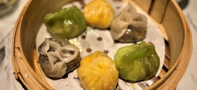 Onto the smaller plates, the vegetarian kaleidoscope dim sum basket is a must and an ideal way to meander into the mains. Served as a set of six with a moreish and enveloping soya dip, two are “Jade”, encasing chives, lotus root, water chestnut, sweetcorn spring onions and vegetables. A vivid green, their exterior is spongy and light and the interior fresh, herby and cleansing. A fail-safe palette cleanser. Two are “Lotus Flower”. Filled with mushrooms, water chestnut, sprion onions and vegetables, these are a translucent grey and a woody and Autumnal take on dim sum with a very welcome nutty finish.
