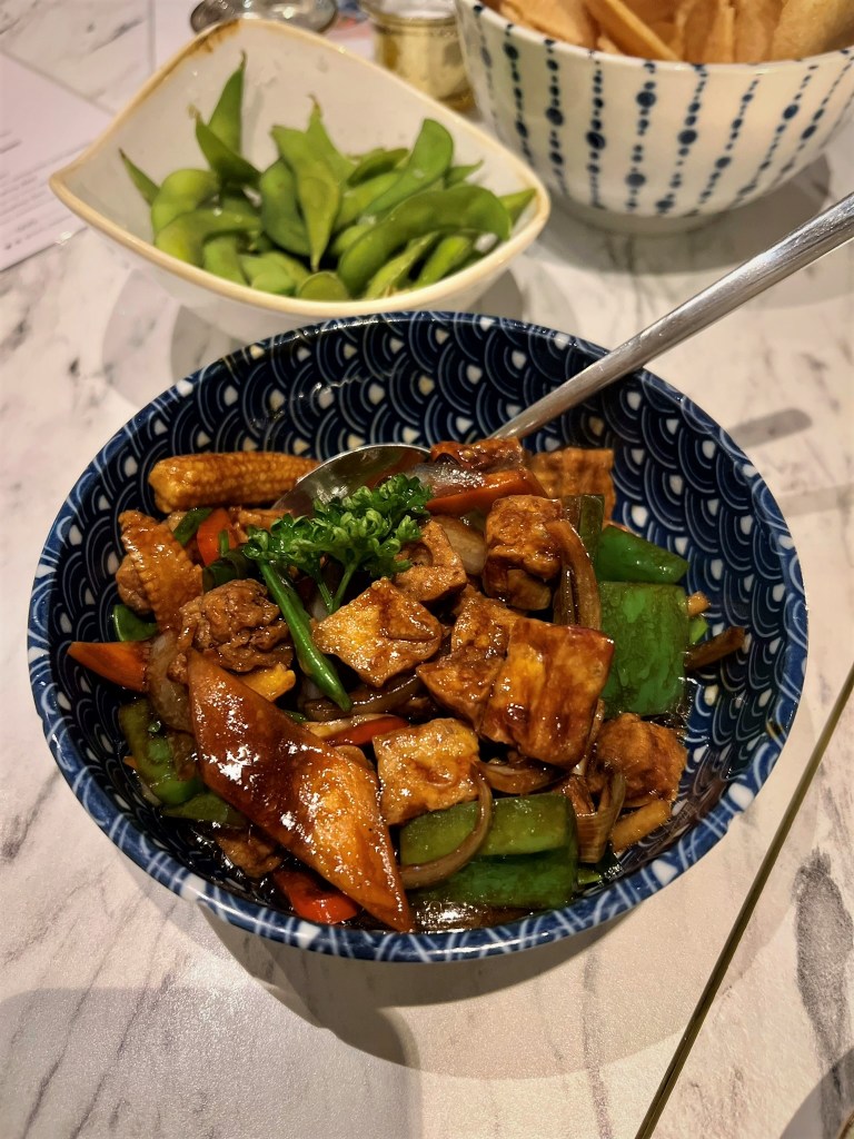 Both were solid bowls, with a sweet and sour finish and a saucy texture that would lend itself very well to a noodle pairing. The aubergines were chunky in cut and cooked to perfection with that satisfying bite. As standalone dishes though, the veggies work less well, begging for an accompanying noodle to soak up the saucy finish.