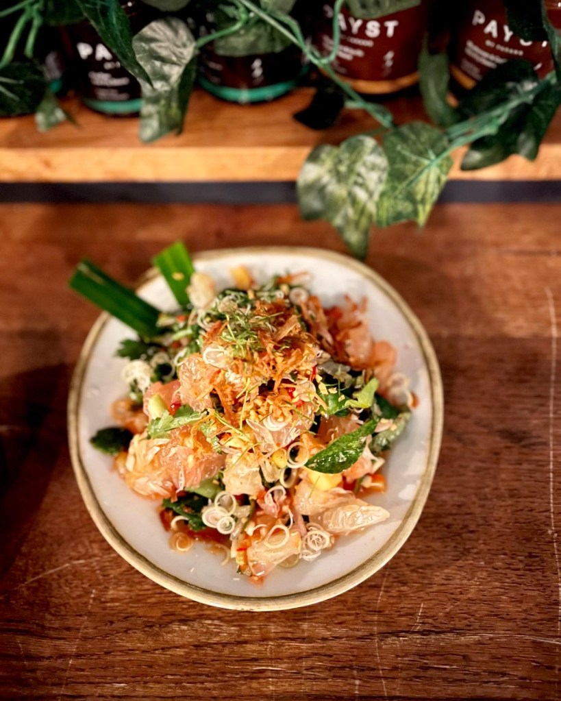 “Farang” translates as “foreigner”. Though perhaps consciously branding as a foreign interpretation of Thai cuisine, a taste of the food here certainy feels authentic – whatever that means. Farang is home to head chef Seb Holmes. Originally opened in February 2017, Farang set up as a pop-up that planned to be around for at least six months. That residency proved a success – even through lock-down when the kitchen skilfully adapted to take-away boxes and a line of condiments under the name “Payst”. So successful was its opening months of innovation that the kitchen now lives on in the form of a permanent restaurant between Highbury & Islington and Finsbury Park.
