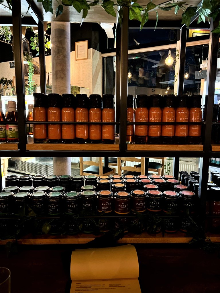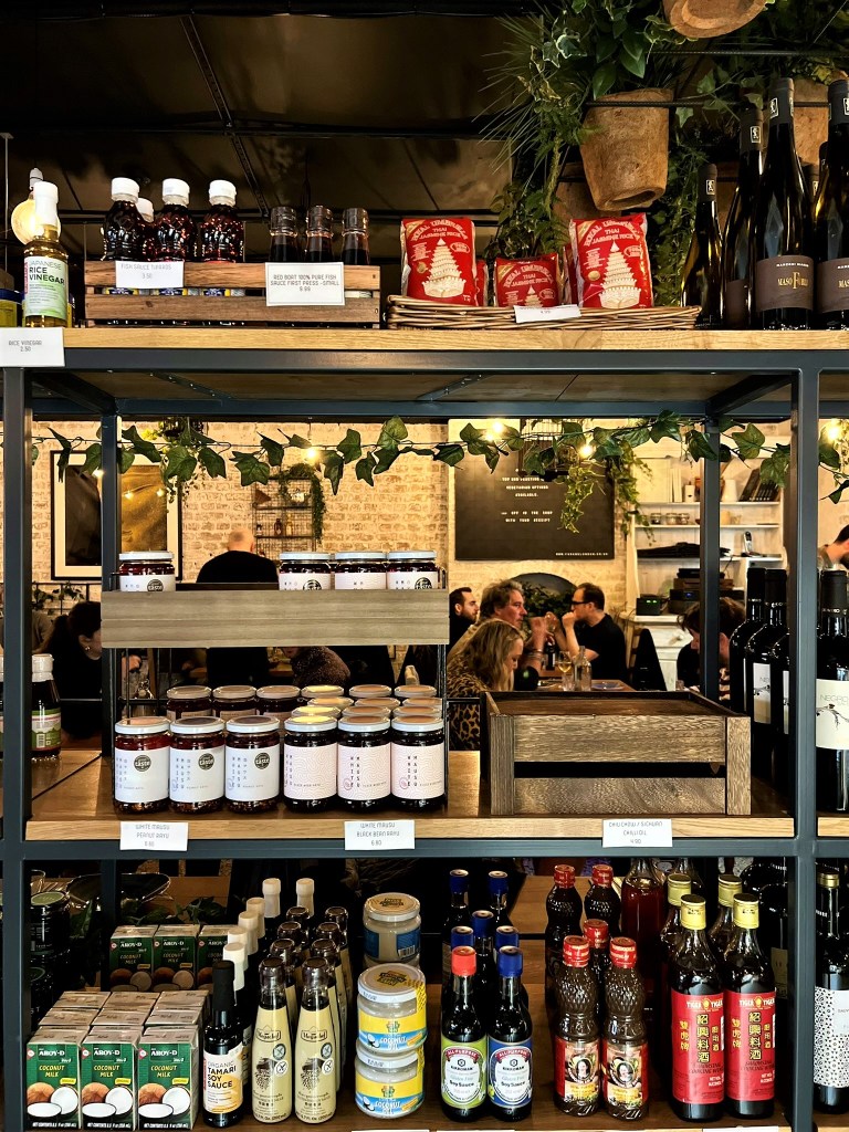 The spaciousness and homeliness of the dining room provides a relaxed neighbourhood backdrop for a meal here. The space also feels all the more homely thanks to blossoming greens hanging from the ceiling and planted around the tables – very botanical. The far side of the restaurant is its adjoining deli which sells their own “Payst” – a selection of Farang’s very own curry pastes and dipping sauces – as well as ready-to-eat food and an array of the very best of Asian condiments, including everything from tamarind and palm sugar to White Mausu spices and an array of salts.