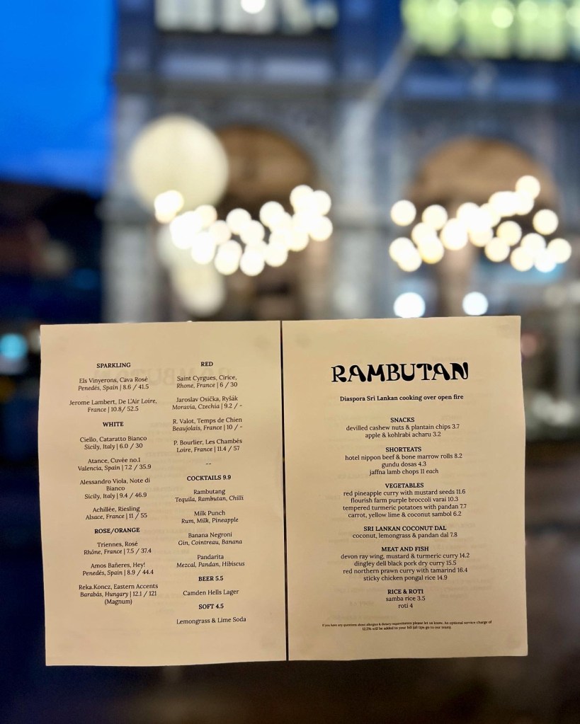 Rambutan tells an important story: that there’s more to Sri Lankan cuisine than rich curries and that this is a cuisine that’s evolving. Though the menu doesn’t feature plates that you might expect – like hoppers, coconut-based curries and aubergine dishes (always a personal favourite) – it’s early days yet. It’s also great that Cynthia is showcasing Sri Lankan food in the heart of London – better still, within one of the city’s culinary hearts. Whilst a staple in Rayner’s Lane, Harrow, Wembley, Tooting, and East Ham, the region’s cooking is yet to get the limelight in the newer crop of central London openings. It’s great Cynthia is changing this and reminds us why London is such a great place: a melting pot of immigrant communities and an opportunity for displaced diaspora to celebrate and reinvent their traditions.