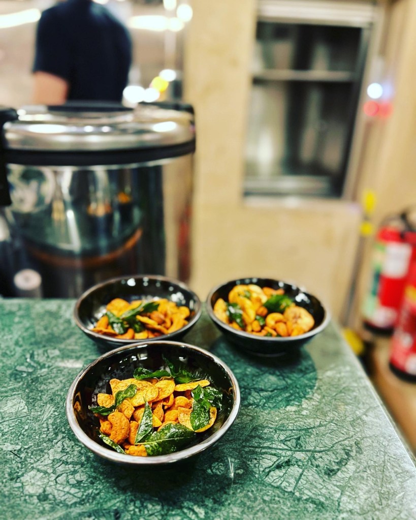 From the Snacks & Short Eats, we went for Devilled cashew nuts and plantain chips (£3.70) and Gundu dosas (£4.30). The nuts were as spicy and toasted as you might hope – totally moreish. The Gundu dosas, meanwhile, were a revelation. Like mini-donughts, made from rice flour they have a dosa-like crispy exterior yet are melt-in-the-mouth inside. Spiced with mustard seeds and chilli, they’re tender bites of pure joy, especially dipped into the vibrant green chutney served alongside.