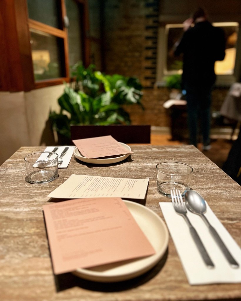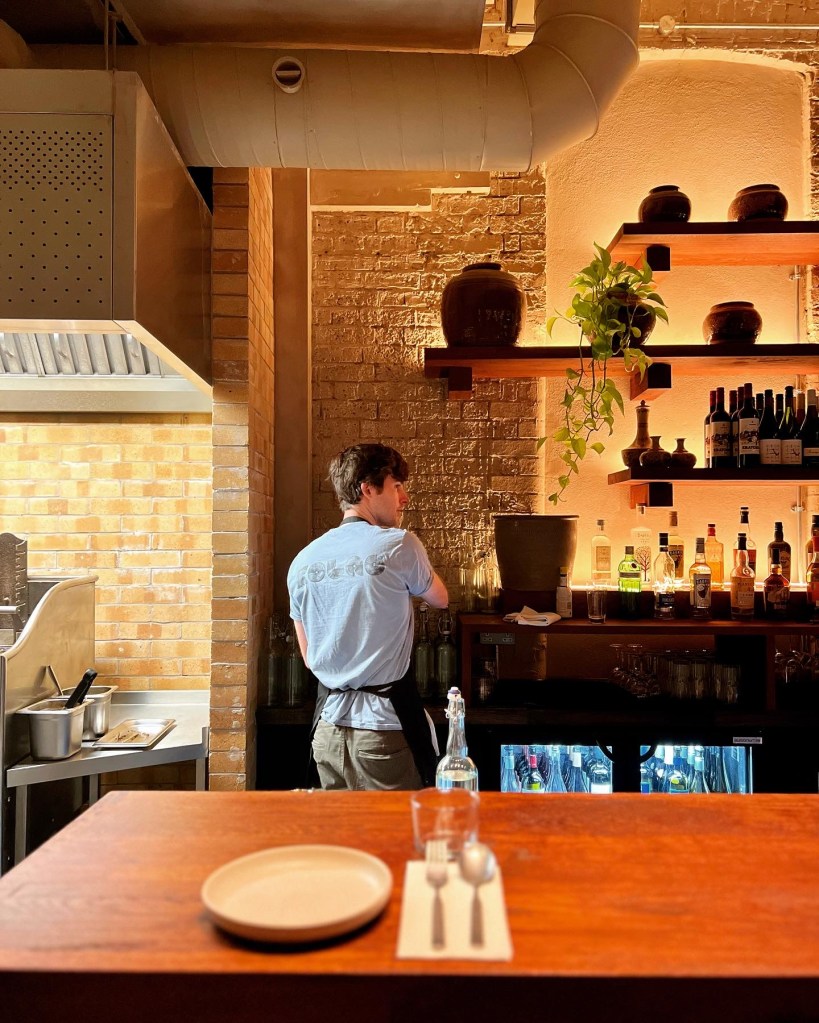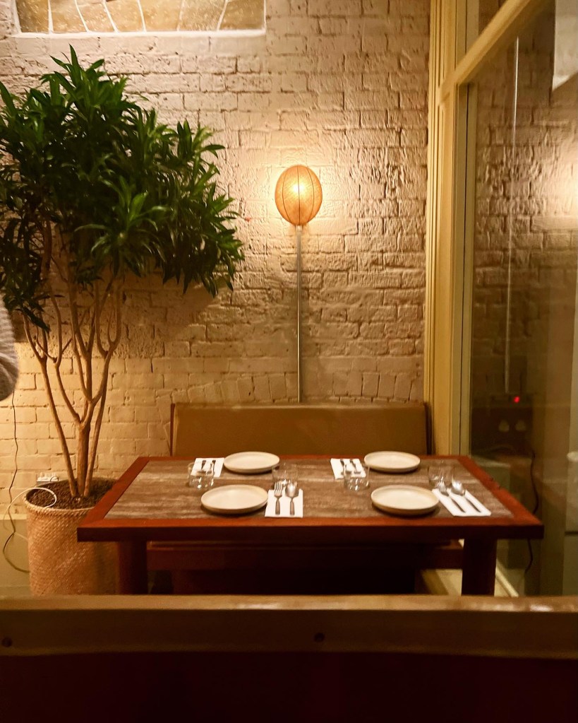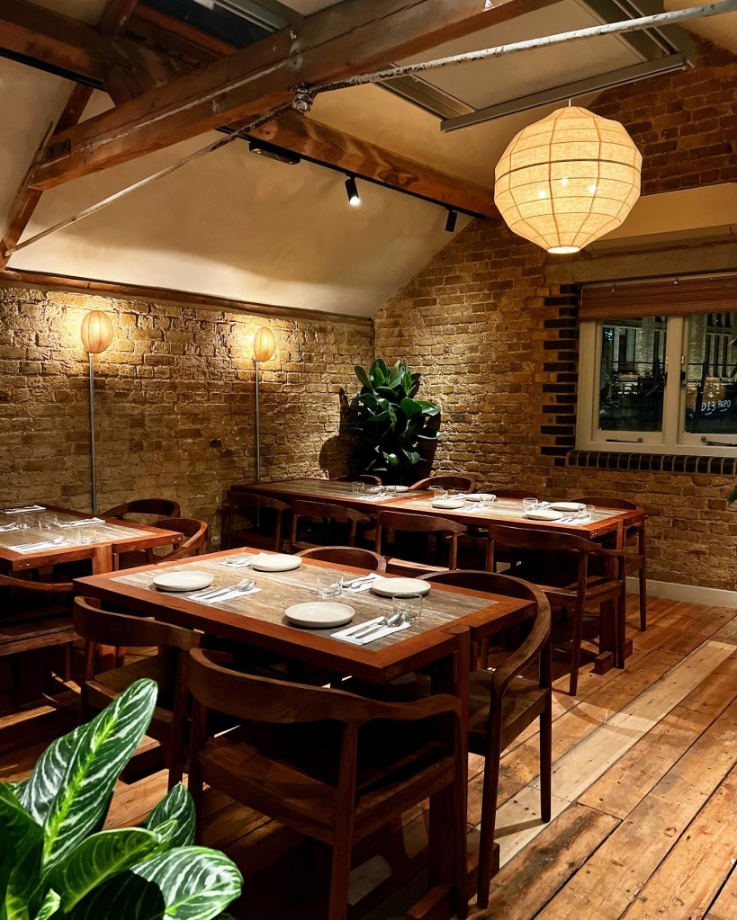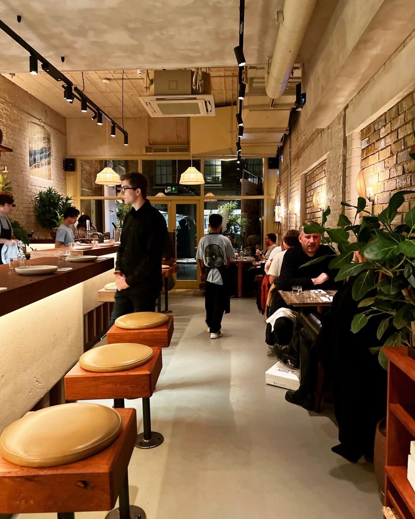 Located in the heart of Borough Market, around the corner from Monmouth Coffee HQ and just opposite Aussie skincare guru Aesop, Kolae is surprisingly spacious inside occupying a three storey, 80-cover space in a former coach house. With a buzzy setting of industrial chic – think white exposed bricks – the atmosphere is warm and relaxed, with waiting staff flitting seamlessly between soft wooden tables and coffee coloured seats, all under the inviting glow of fabric-shaded lamps.