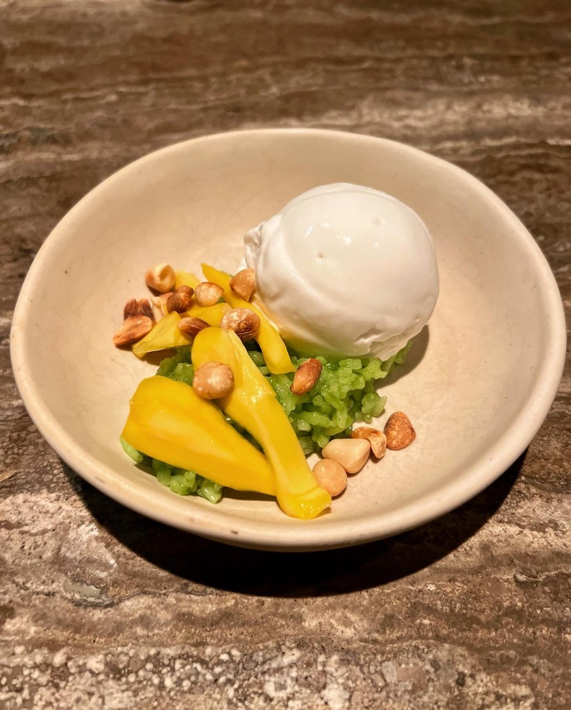 To finish, we went for pandan sticky rice, young coconut sorbet, peanuts & jackfruit (£7) – that elusive fruit that sits somewhere between mango & banana. Both sweet and salt, this fresh and light little number hits all the umami notes whilst also being gentle and sweet – a good note to end on.