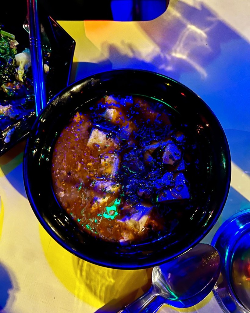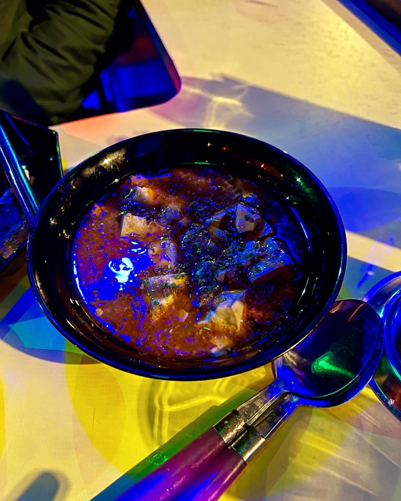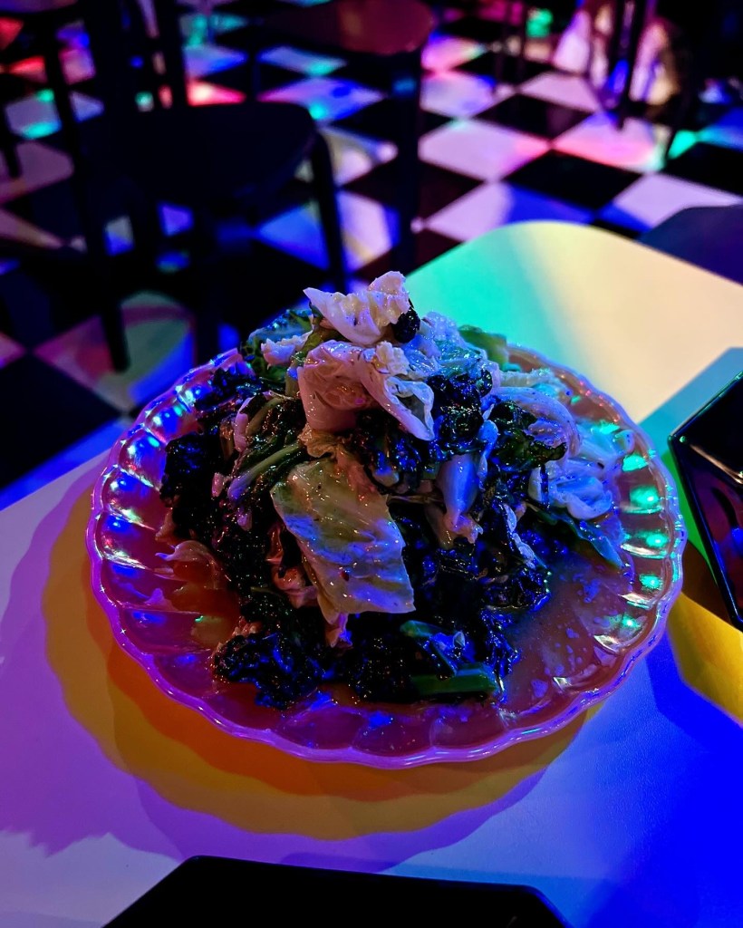 Overall, Facing Heaven’s food is creative, loud and doesn’t hold back. As well as being masters of aesthetic and atmosphere, Denis’ team are capable of injecting vegan food with creativity, playfulness and intensity. The whole experience was like being hit over the head in a weirdly good way. The intensity and extremity of the Sichuan pepper and chilli and the unexpected disco vibe all around was a sensory overload. An overload that’s worth embracing having trekked to Hackney. On a Friday evening.
