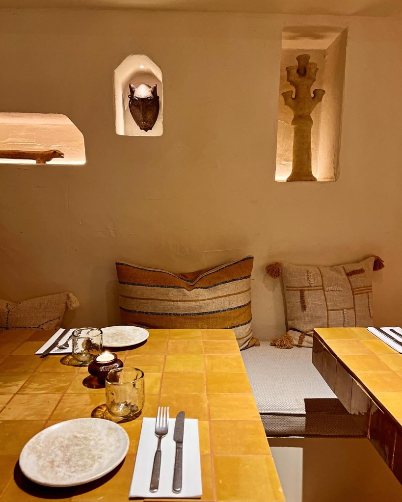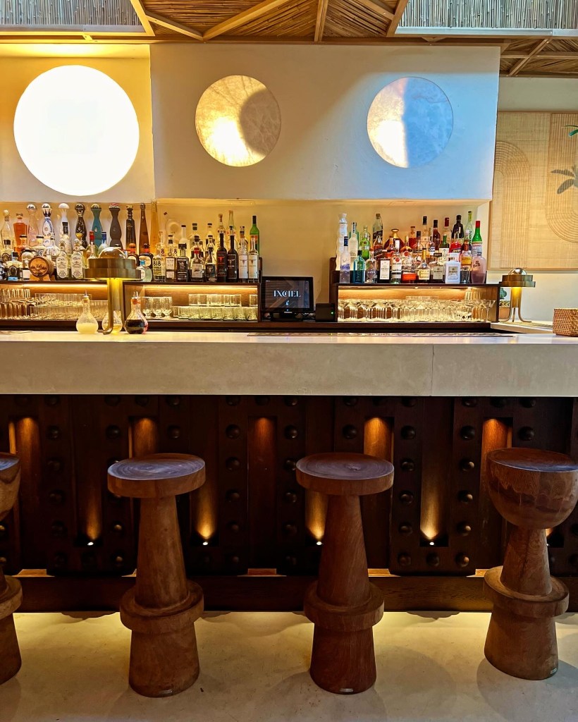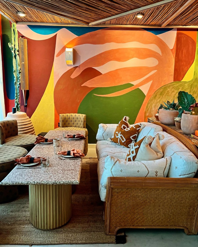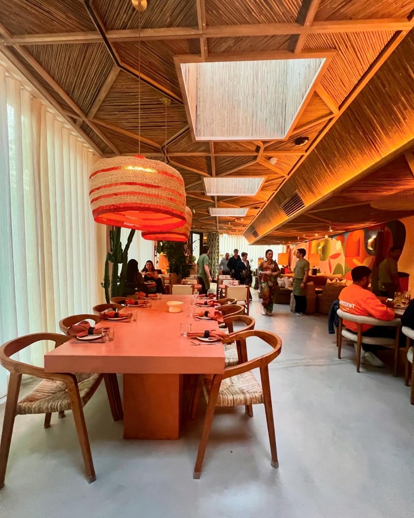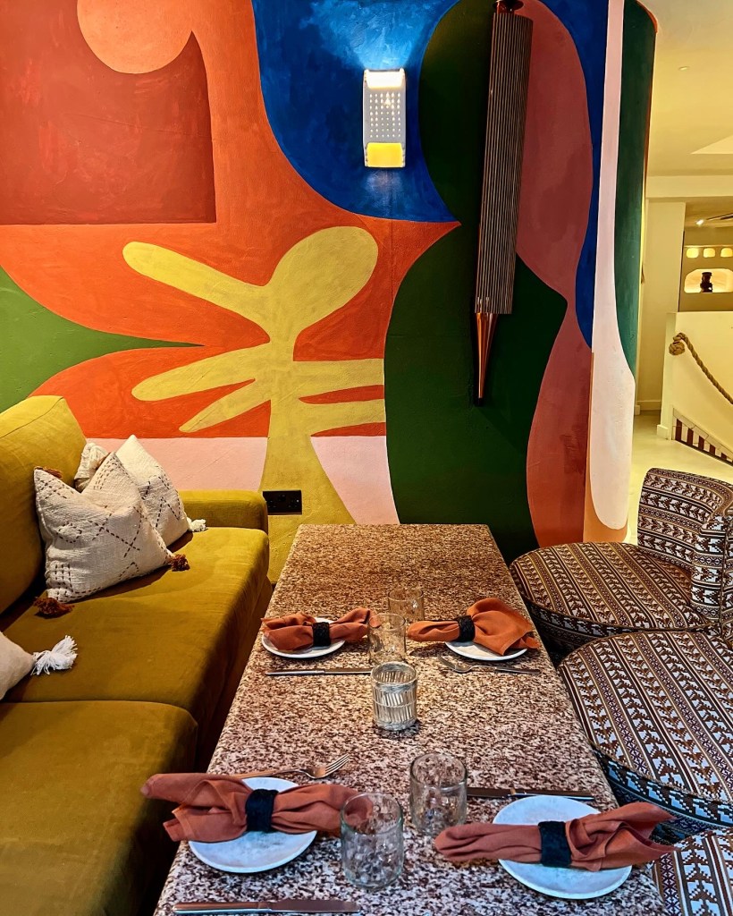 Named after the Mayan goddess of the moon and textiles, Ixchel is an aesthetic joy. Aptly, moon symbols can be seen throughout the contemporary space alongside warm brass accents and bespoke tiling. Varying textures add depth and intrigue: think soft curves, tactile fabics and playful murals. Very Tulum. With cacti tucked around hidden corners, the ground floor is bright with floor-to-ceiling windows (albeit fully draped), whilst the downstairs is home to a more moody bar that sees a DJ on Friday and Saturday nights.
