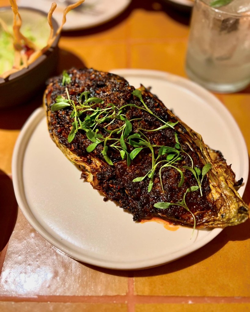 Alongside, came the Roasted hispi cabbage (£8), vibrant, smokey and visually striking. Though topped with a punchy salsa macha, the dish needed a vibrant sauce to bring it together and make it a whole. Sitting alone, the cabbage was a little dry.