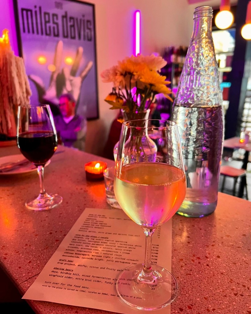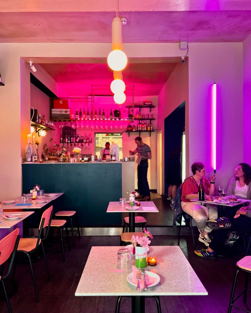 Like the wine, the interiors are laid-back and effortlessly hip: think a Miles Davis poster, distressed candles, houseplants and bare pendant lighting. With a handful of tables inside, a few out and a small counter to perch at near the kitchen, the vibe is cosy yet cool.