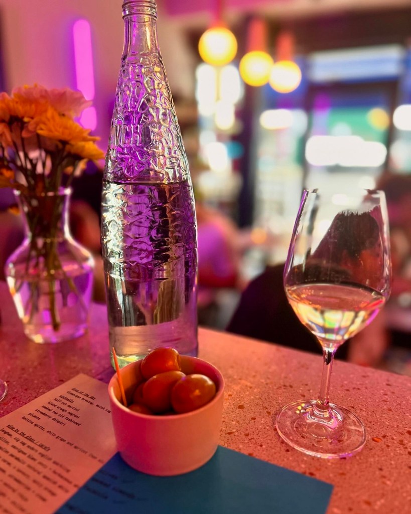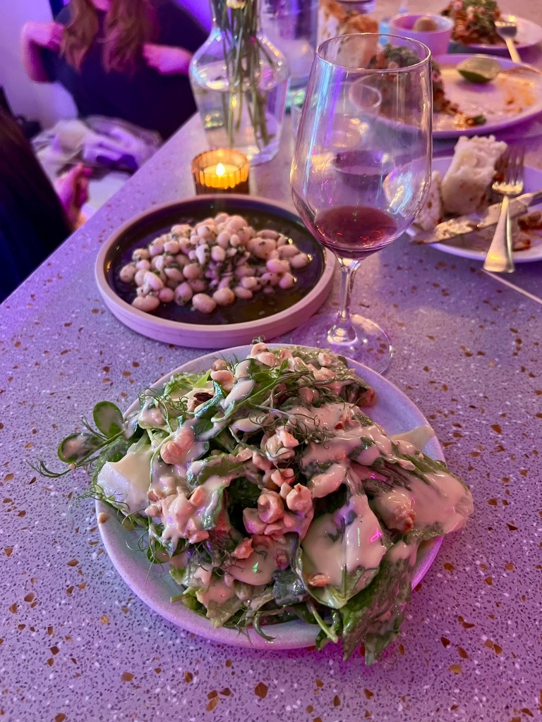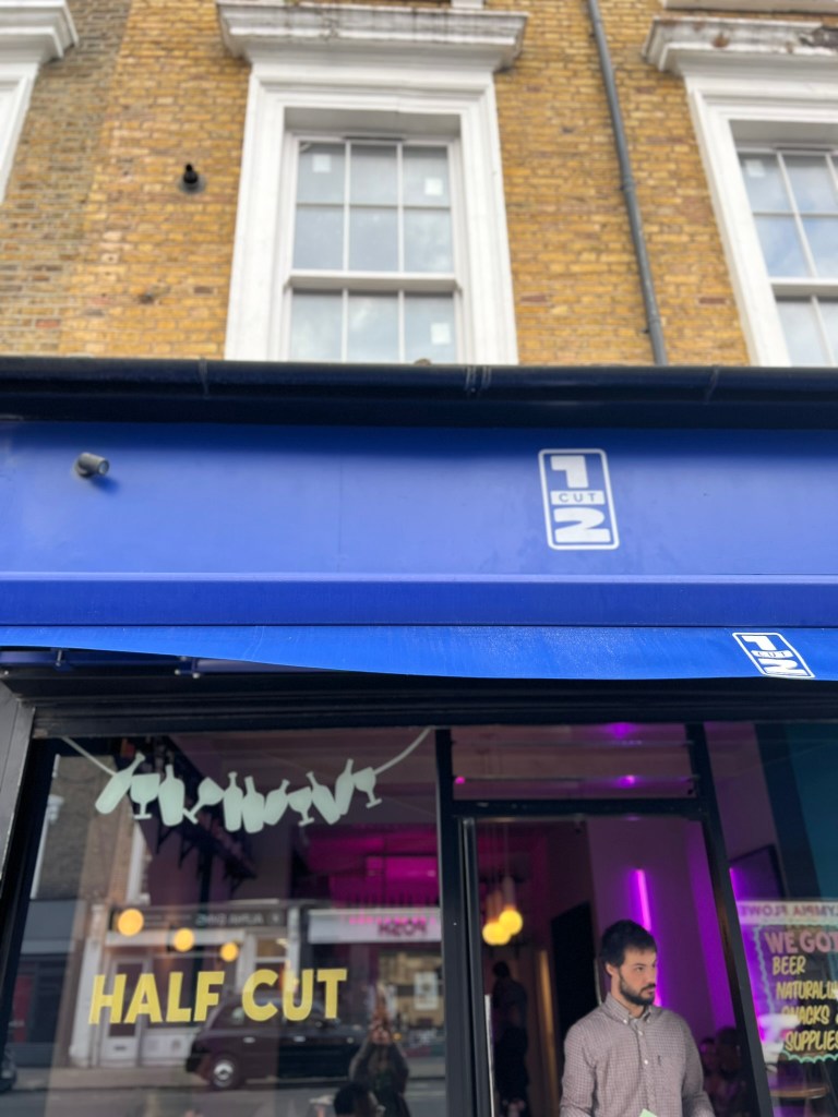 Half Cut feels like a real neighbourhood spot – a stream of walk-ins were swinging by for their weekend bottles – and if it were closer to my home, I’d certainly be doing the same. Though they have an attractive cocktail menu – featuring blood orange negroni and picante (spicy margarita) – their wine is ideal for a summer evening – think premium low-intervention and natural, including a good number of English wines both sparkling and from Tillingham estate. This evening, we went for a glass of Spanish Parabòlic Blanc (Macabeu, Xarel·lo, Parellada) from the Vinícola de Nulles winery. A dry, “textural”, fruity white, it’s very easy to drink and light. To follow, we went for a carafe of Domaine Guy Allion. A sauvignon blanc, this zesty herbaceous white matched very well with our food.
