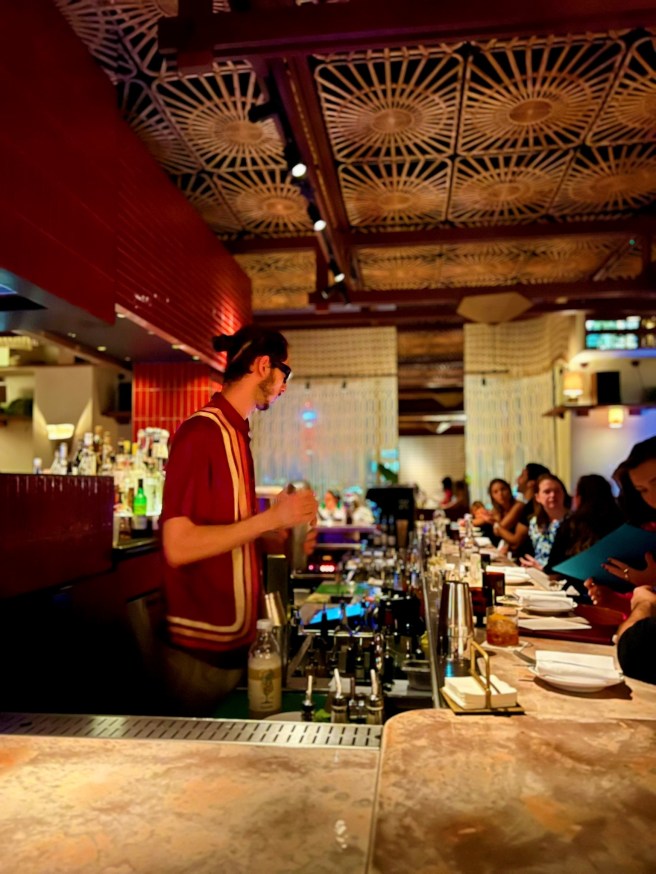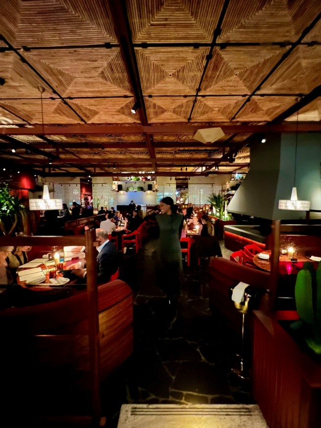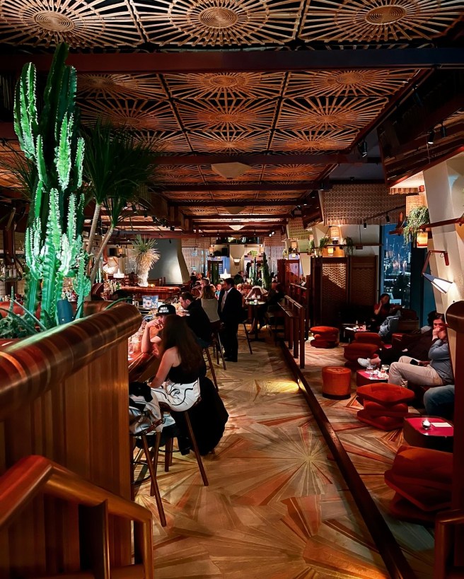 Stepping into Decimo fills you with warmth and sunshine thanks to the burnt orange and earthy hues punctuated with vibrant green cacti and succulents. The restaurant is open-plan with floor-to-ceiling windows, two big buzzing bars and skyline views. It’s like a 1970’s glamorous Mexican beachside villa where Hollywood stars might vacation. Taverna style furniture upholstered in luxurious velvets with Missoni style prints add softness to a space that wows but doesn’t overwhelm. Like the rest of The Standard, it’s a mix between grown-up glamour and playfulness, with a menu that doesn’t take itself too seriously and a bold interior that others might struggle to pull off. With a backdrop of the grand St. Pancras station on one side and central London on the other, the restaurant is an artful eclectic mismatch of styles.