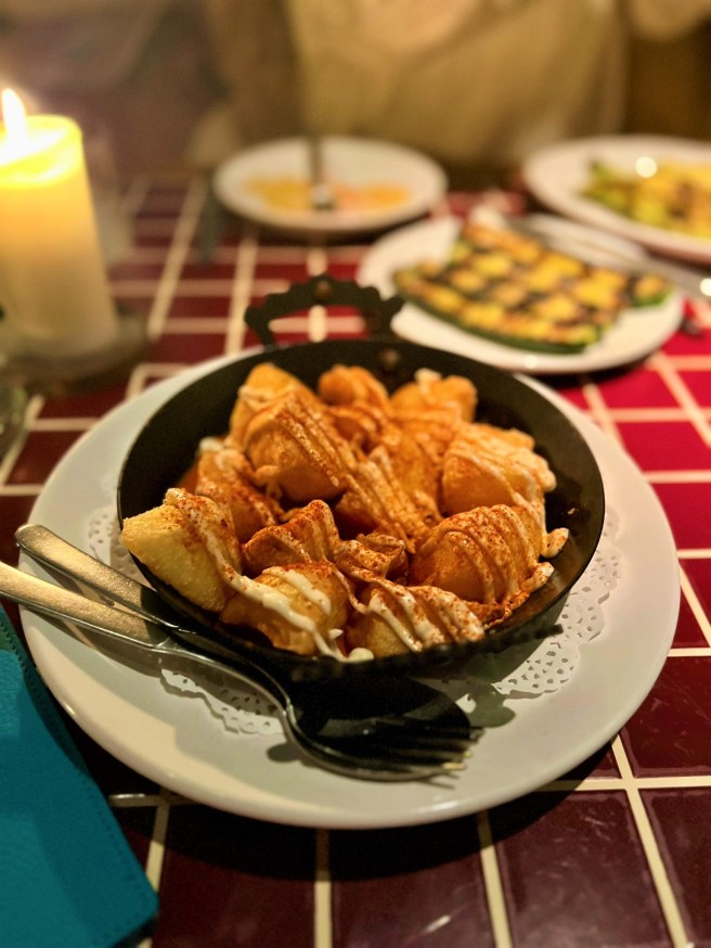 The veggies here function more as mains. Not least, patatas bravas (£8). Served above a layer of moreish tomato sauce and finished with a drizze of aioli, they’re very generally portioned and satisfying. Though the potatoes have a crispy finish, they’re tender inside: very satisfying.