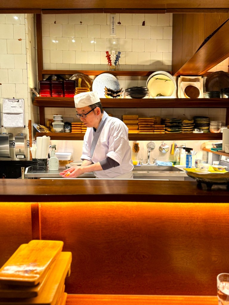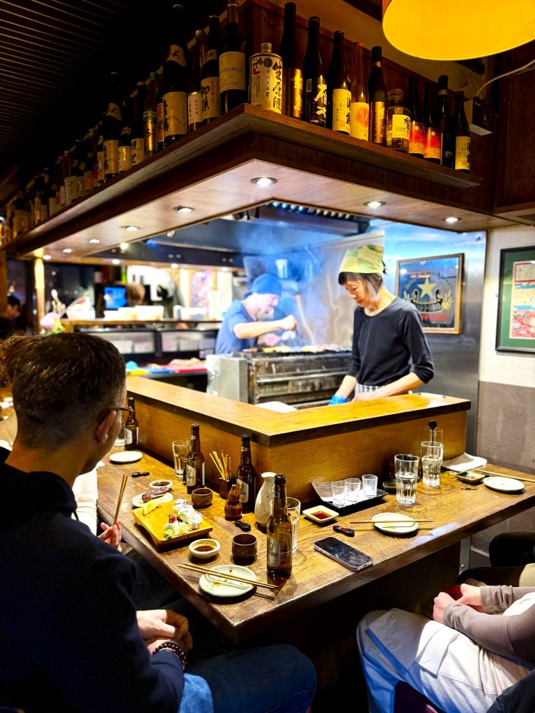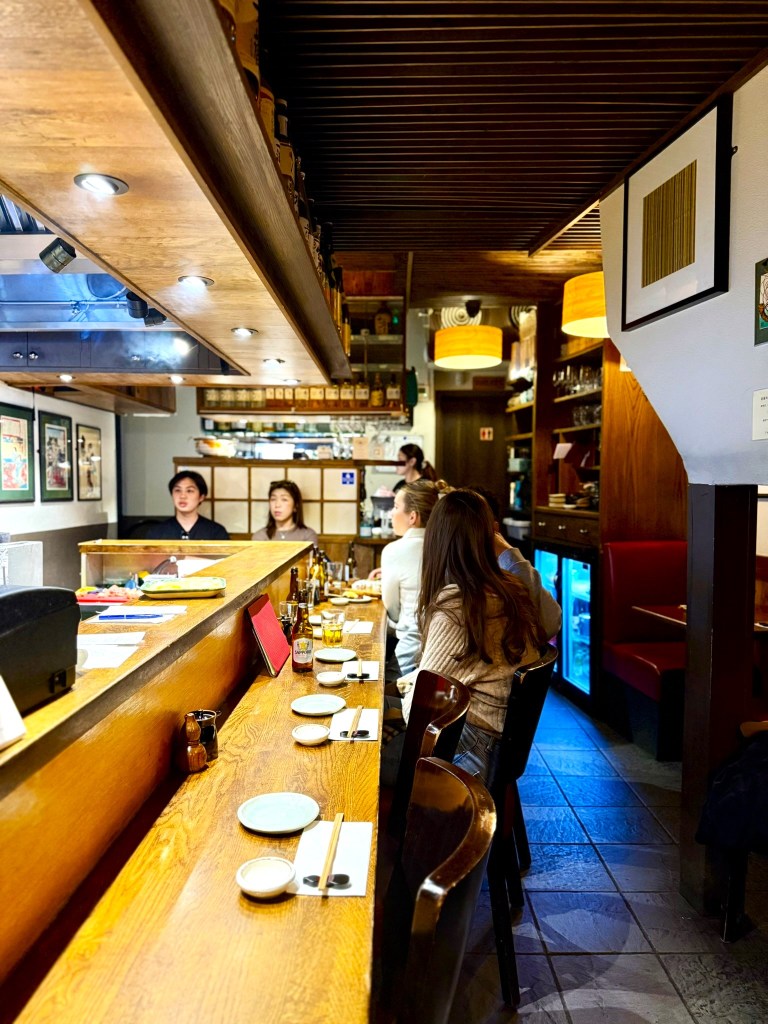 Next time, I’ll be sure to order Agedashi tofu (deep-fried in tenpura sauce), which sounds like squares of deep-fried bean curd in a light but slurp-worthy umami broth. I’d also be sure to book a couple of weeks – at least – in advance to secure a spot at the counter surrounging the charcoal grill to watch the chefs in action. The tables downstairs felt rather cold thanks to the kitchen breeze.