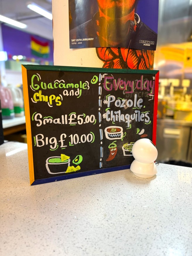 As well as the famous tacos (also available as non-meat options), there’s freshly made Guacamole and Chips (£5 / £10), Chilaquiles and Quesedillas. To drink, the horchata and tamarind juice will be sampled on my next visit for sure. A fuss-free, authentic taste of Mexico in a market stall in Peckham. Ideal for a quick weeknight bite.