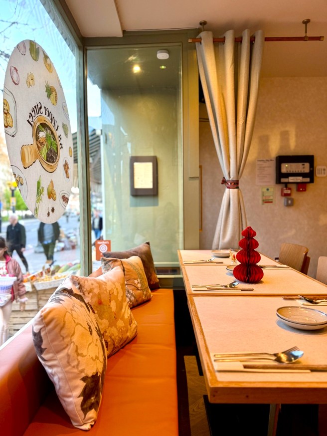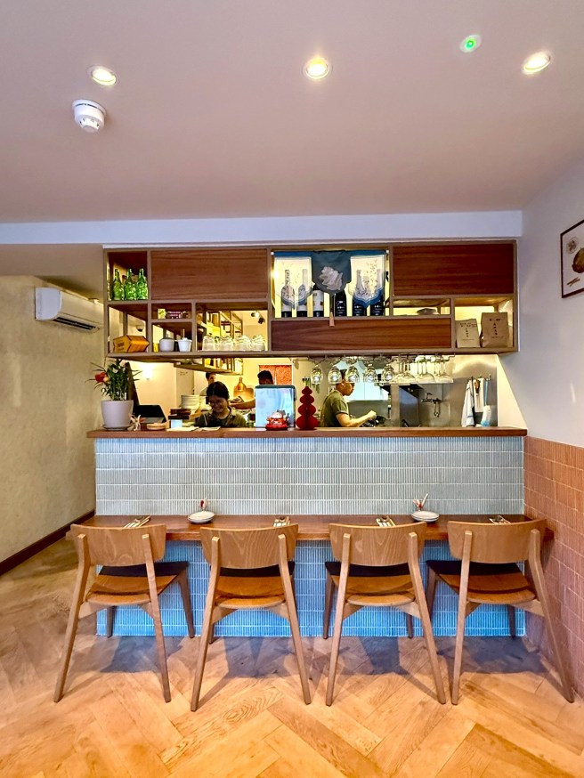 Set in a tiny Upper Street townhouse, it is a 12-or-so table, L-shaped space simplly put together in pine wood and tones of olive green. Like the general approach here, it’s soothing and understated. The service is also as kind and light touch, although a little slow at times.