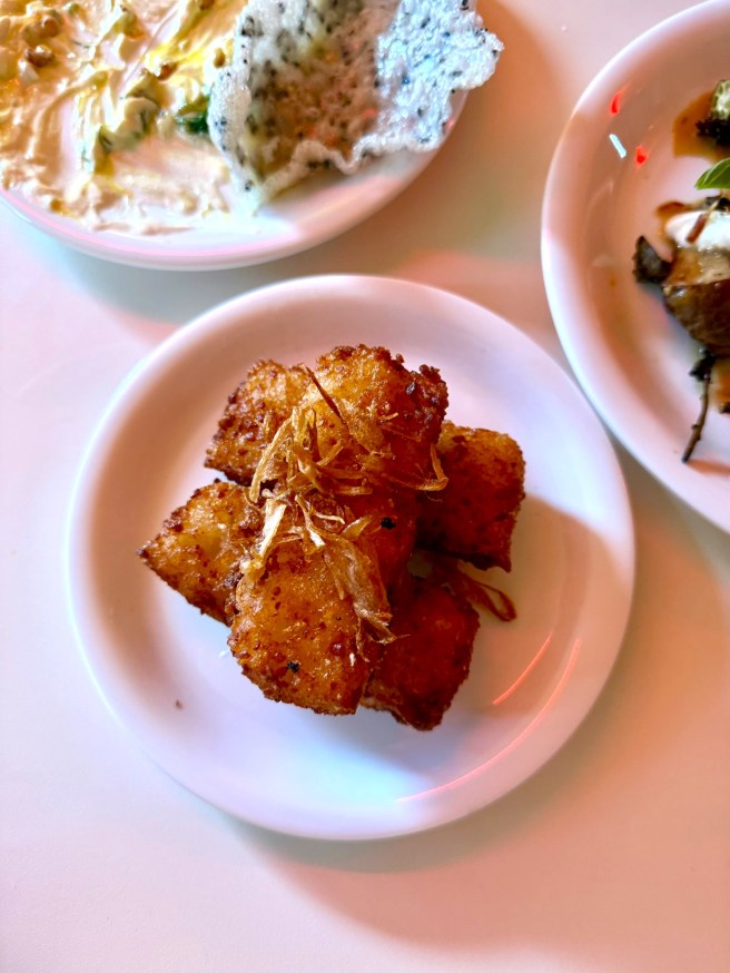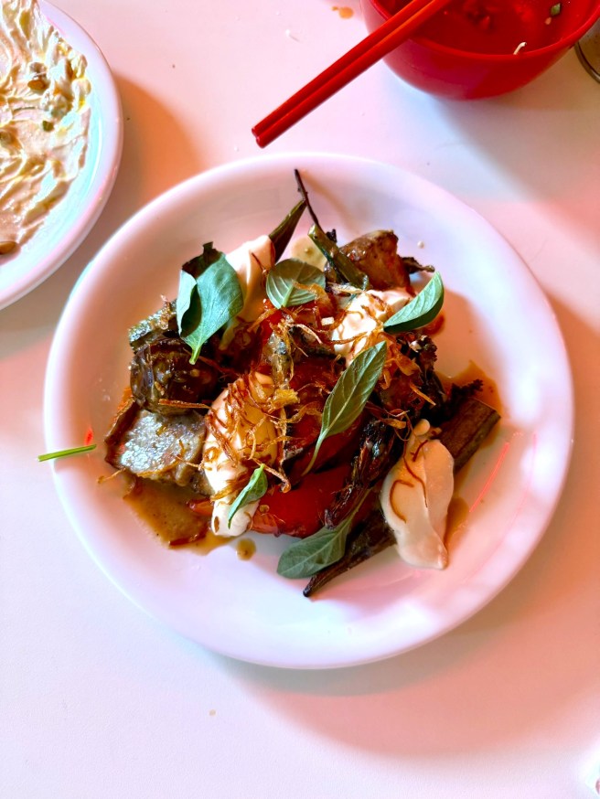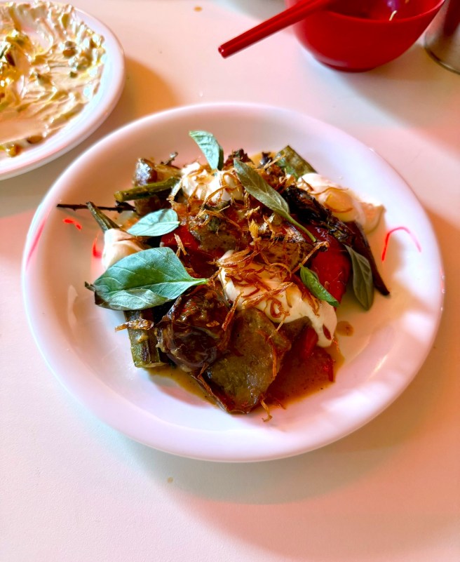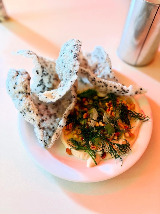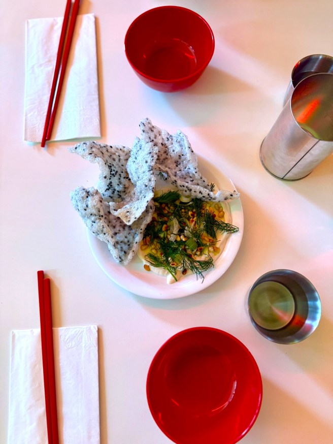 A collaborative venture between Blair Nguyen and Ivy Vo of @vinaxoa, Joseph Losper and Tomio Shota of @houseofbaby.studio, and visual artist AP Nguyen, Lai Rai is part of the Banh Banh restaurant group. The menu here takes inspiration from across Vietnam, though with a modern approach and plenty of very tempting vegan options. To start, we went for tofu whip will dill, pine nuts and sesame crackers (£8): creamy and herby whipped perfection, this is unmatched. A dreamy revelation.
