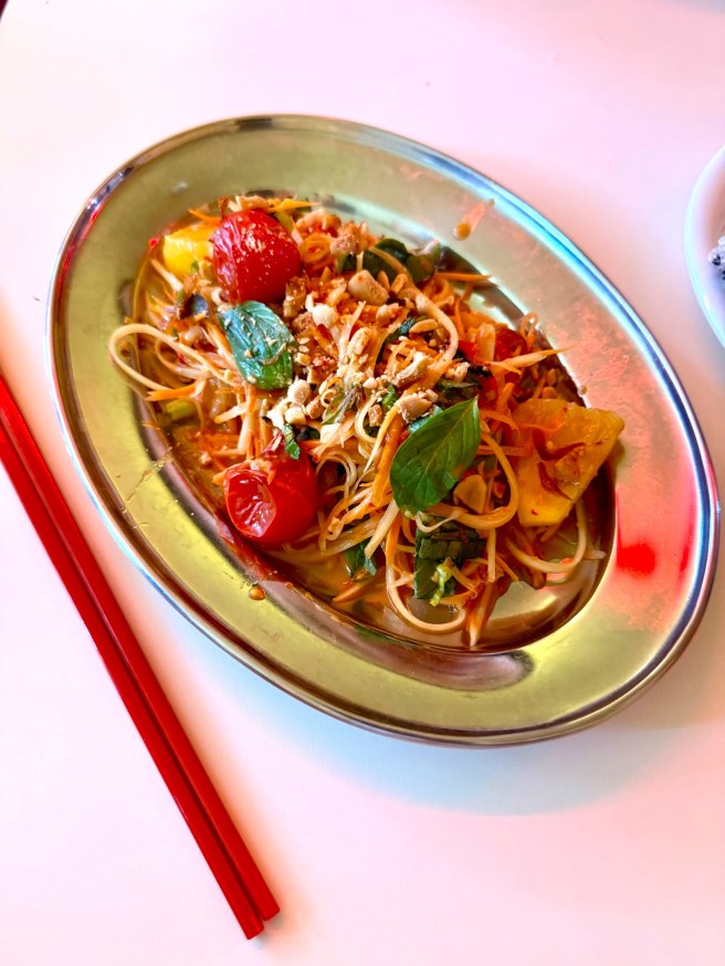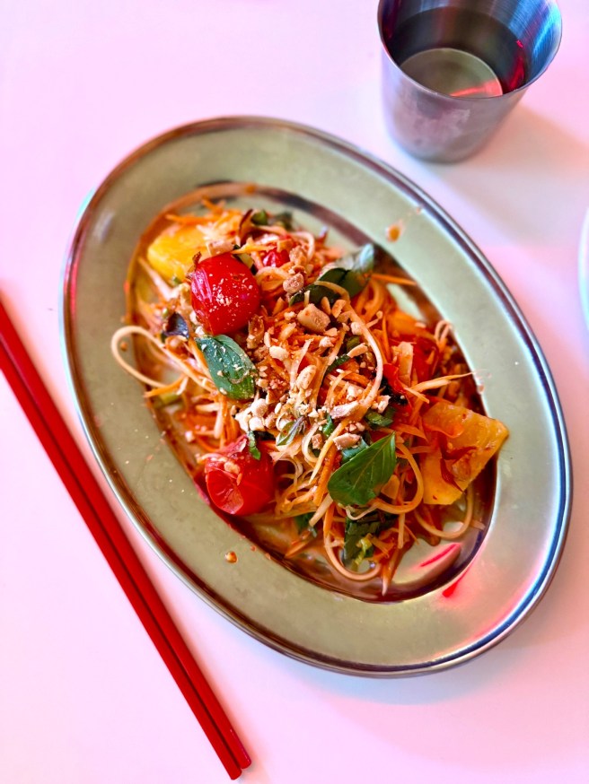 Alongside, papaya salad with pineapple, viet herbs and peanuts (£11). A symphony of textures, this was at once citrusy, sweet and crisp – everything you could want on a hot summer night. Generously seasoned with herbs – including fresh and fragrant basil – the flavours were perfectly balanced.