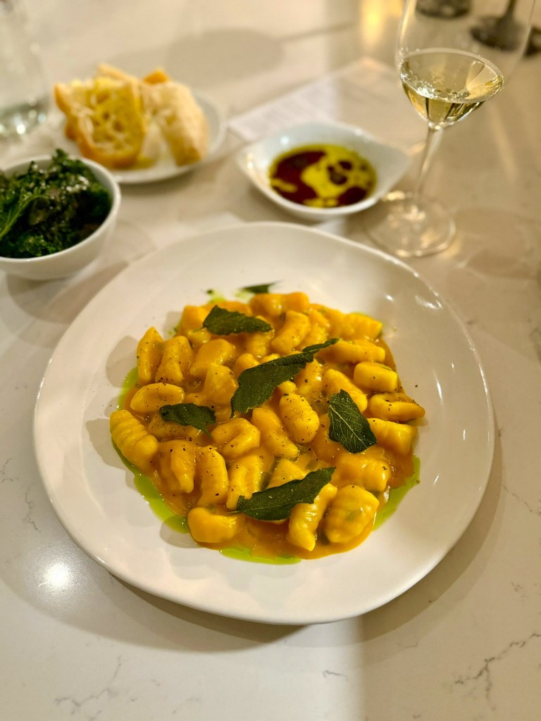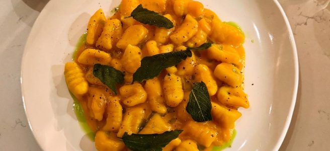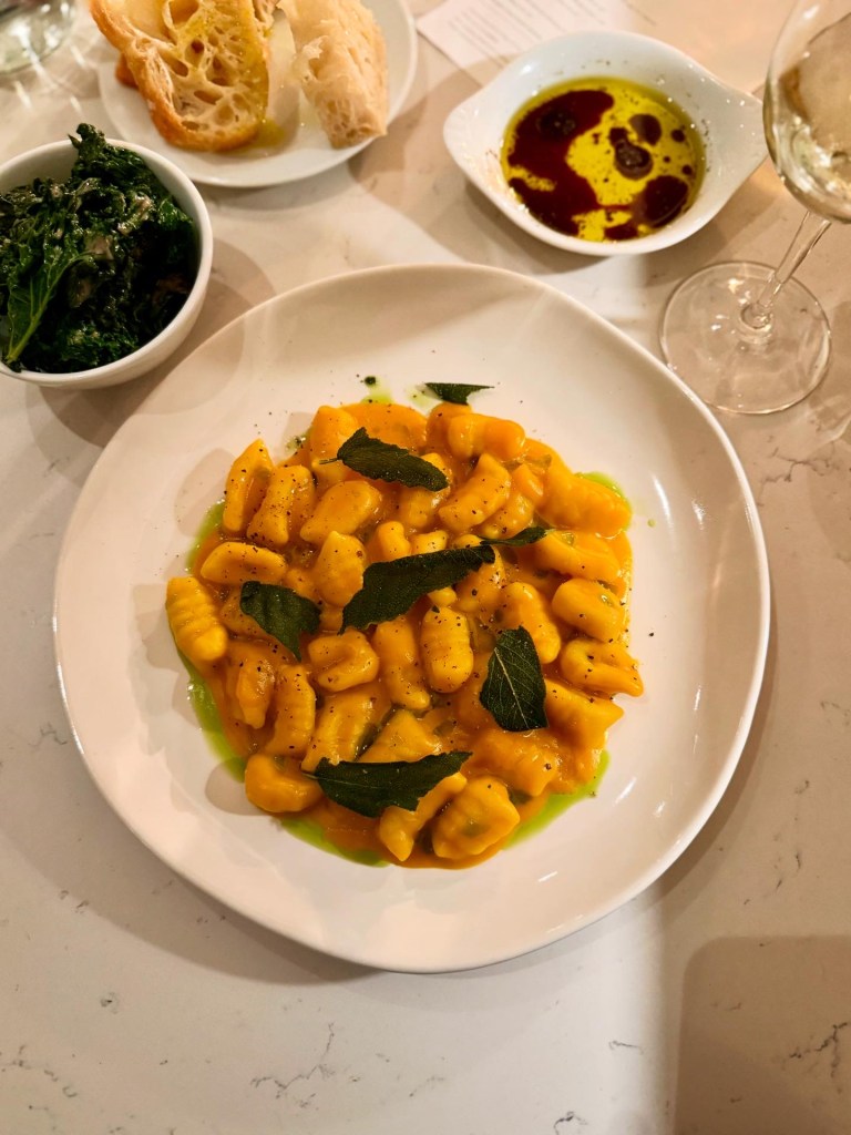 Pasta-wise, I went for Gnocchi, prepared vegan by our kind Neapolitan chef, with delica pumpkin and fried sage (£24). Traditionally a hearty and comforting sauce, this was both, but also showed off skill in blending smoky flavours without overdoing it. Very refined.